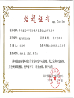 宋洁琳等,2020-2021,四川外国语言文学研究中心项目,“西部地区中学英语教师发展的生态环境分析”。